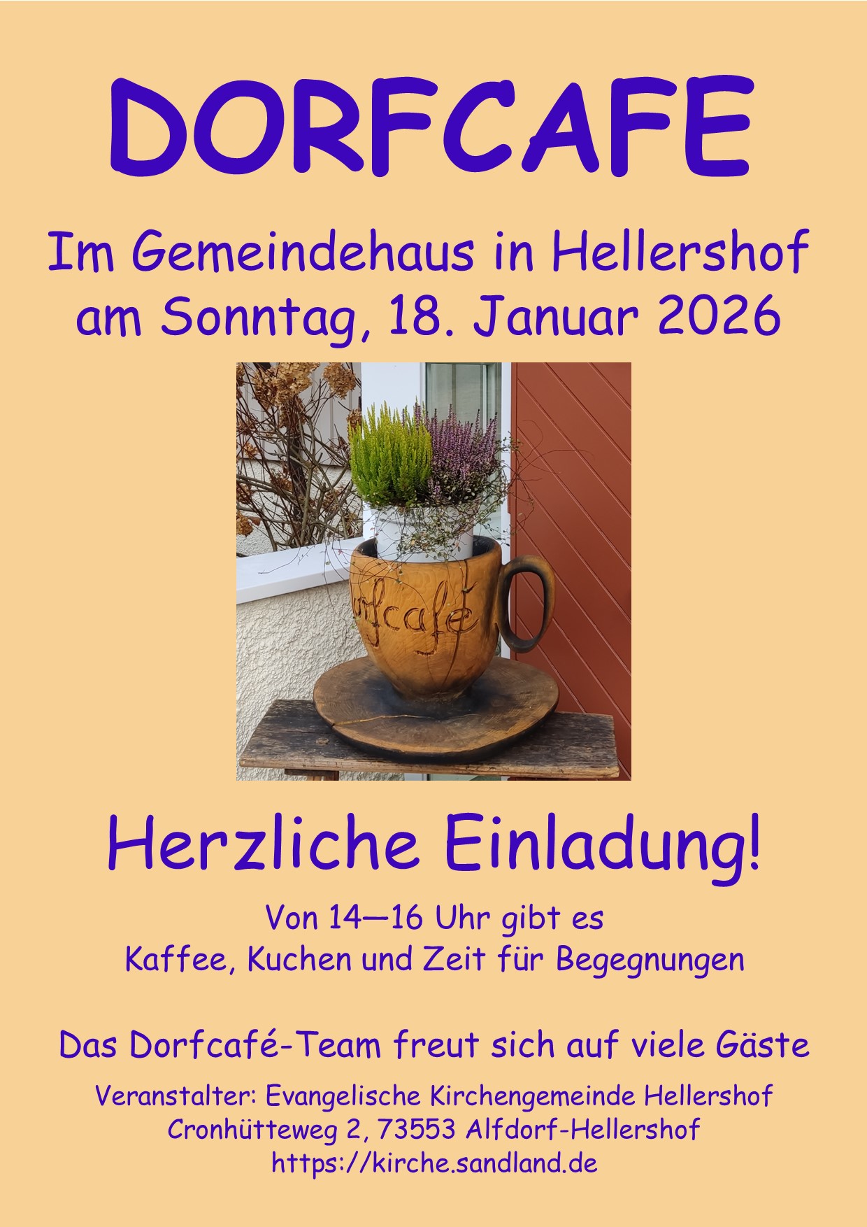 Im evangelischen Gemeindehaus in Hellershof ist am Sonntag, 18. Januar 2026 wieder Dorfcafé. Zwischen 14 und 16 Uhr gibt es Kaffee, selbstgebackenen Kuchen und Zeit für Begegnungen. Herzliche Einladung. Das Dorfcafé-Team freut sich auf viele Gäste.
