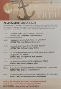 10.00 Uhr Gottesdienst in der St. Gallus-Kirche in Welzheim zum Auftakt der Allianzgebetswoche.