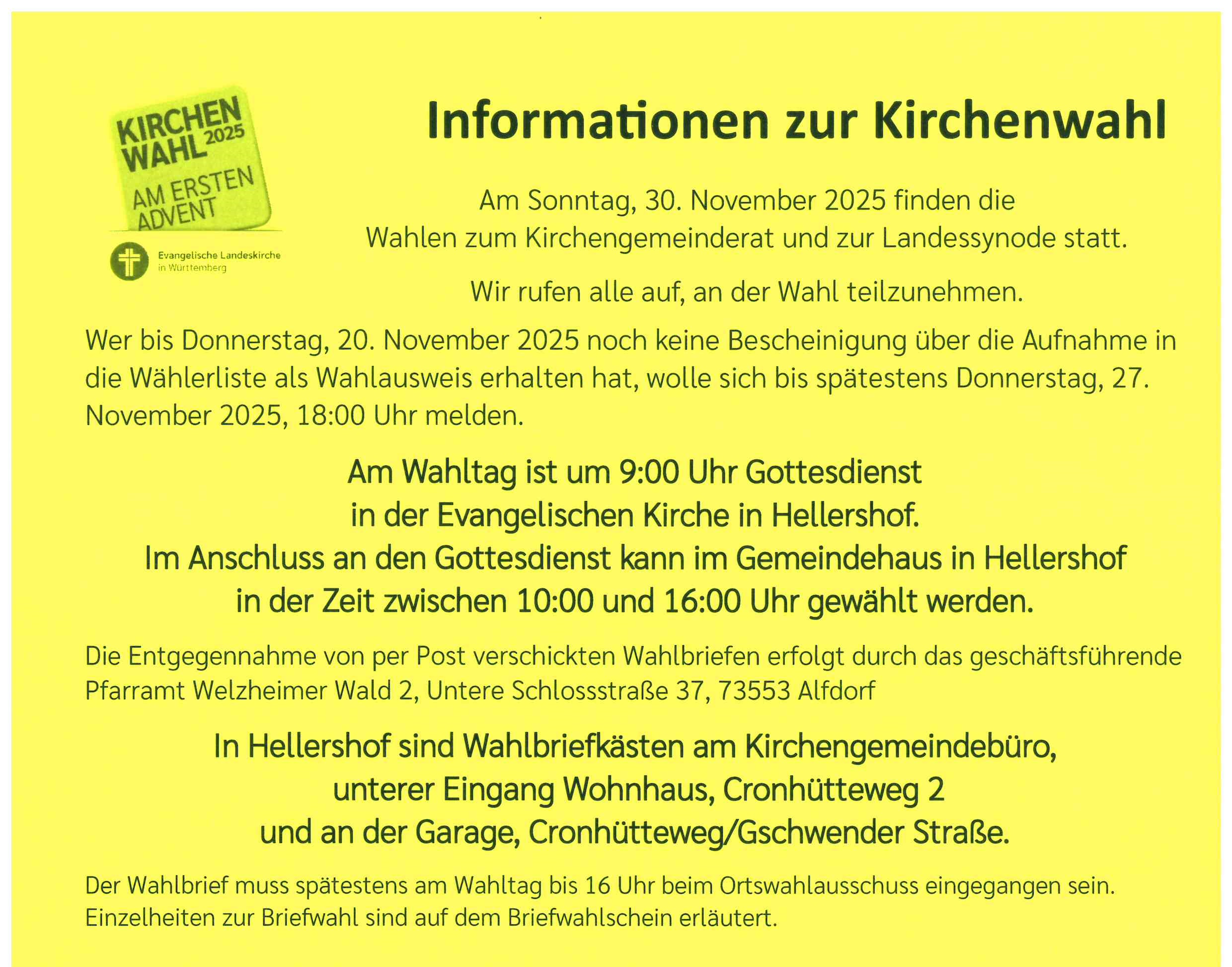 Informationen zur Kirchenwahl am 30. November Beiträge Navigation ← Vorherige Beitrag Nächster Beitrag →